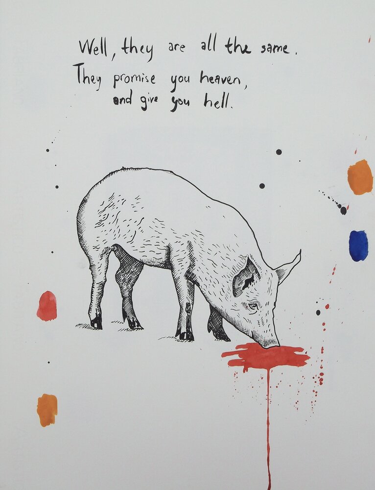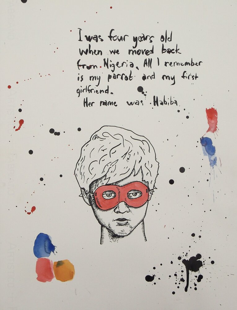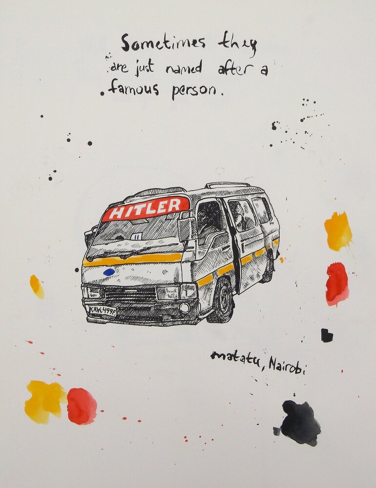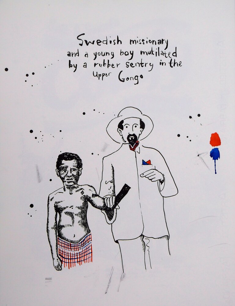 This series of works on paper was started in an artist-in-residency in Nairobi, Kenya in May 2013, where the works were produced and shown together with Andries Fourie (USA) and Nicky Marais (Namibia). This series also marked the end of my digital drawings and the beginning of my utilization of artist mediums related to colonialism (paper, ink and water-color). This process has continued since I began using this method in Kenya in 2013.