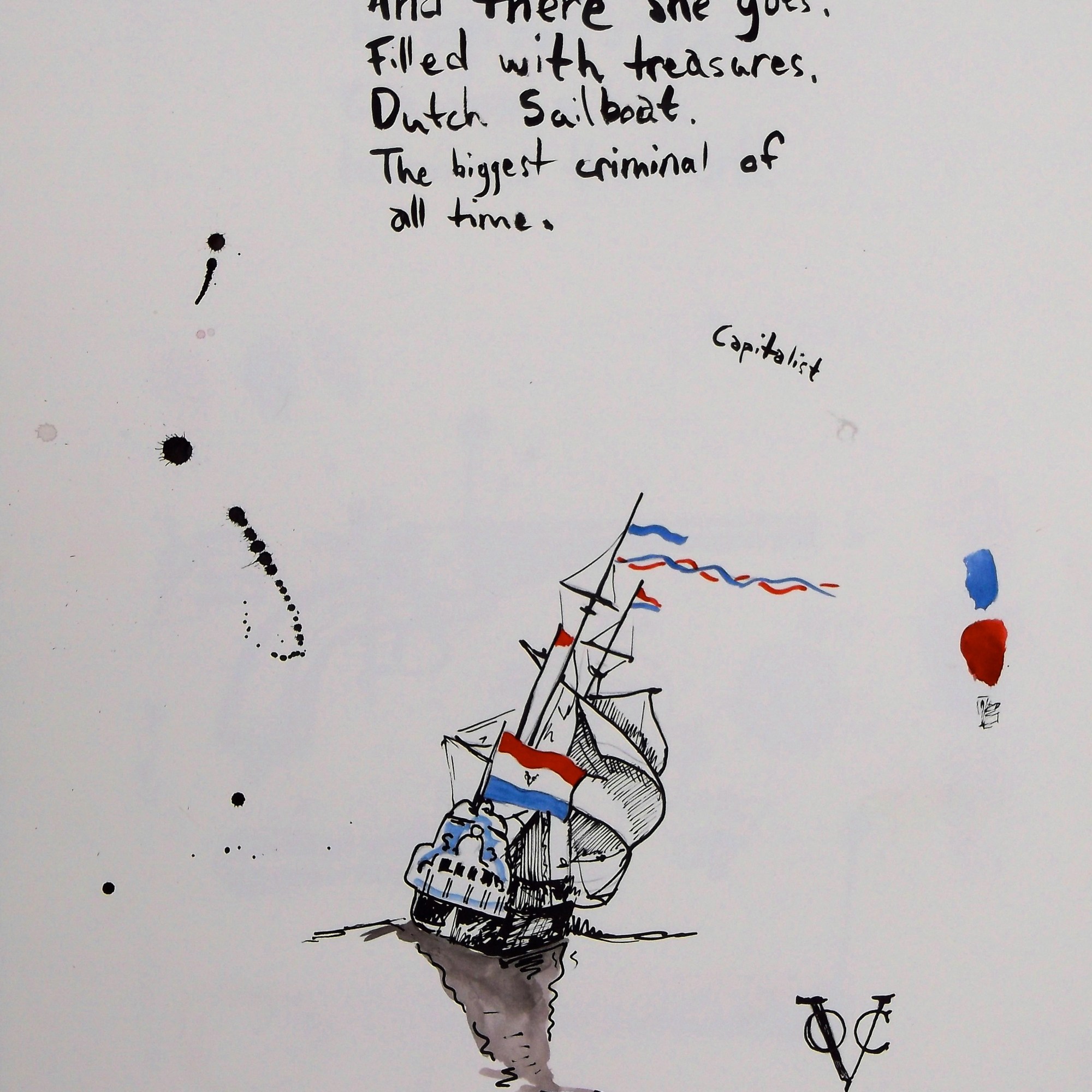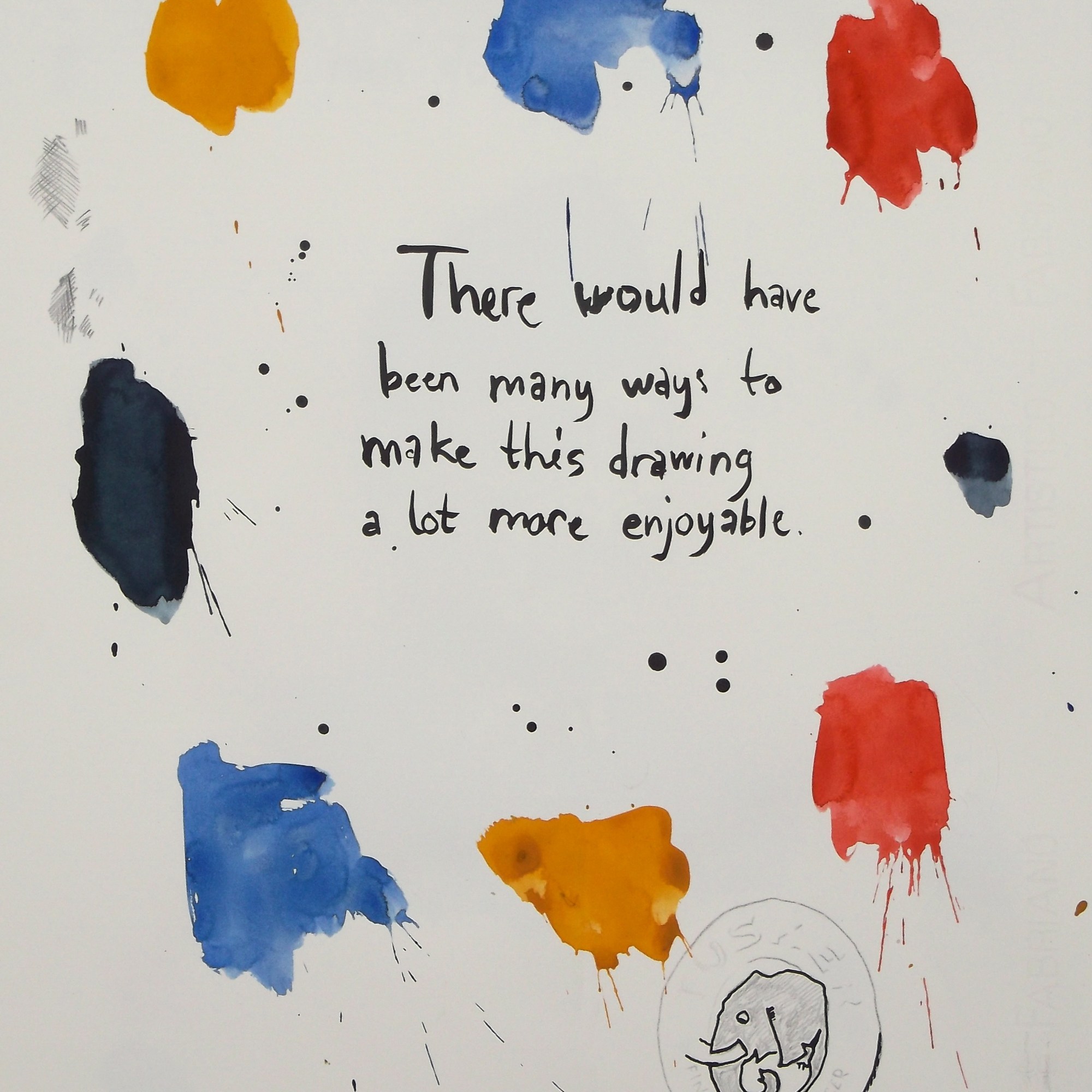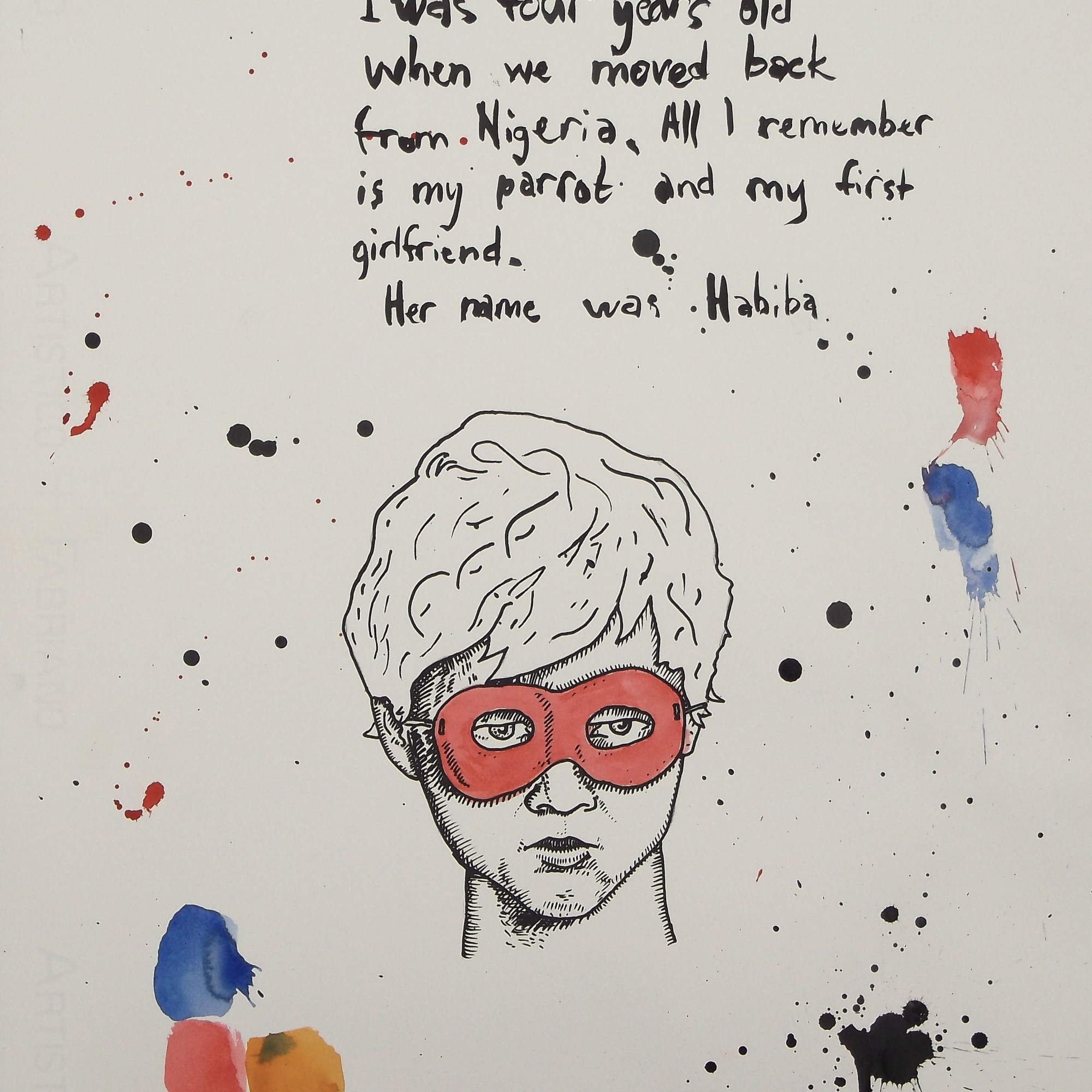 This series of works on paper was started in an artist-in-residency in Nairobi, Kenya in May 2013, where the works were produced and shown together with Andries Fourie (USA) and Nicky Marais (Namibia). This series also marked the end of my digital drawings and the beginning of my utilization of artist mediums related to colonialism (paper, ink and water-color). This process has continued since I began using this method in Kenya in 2013.