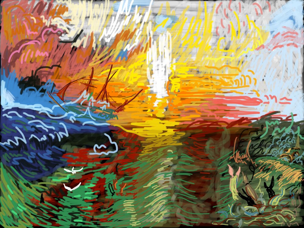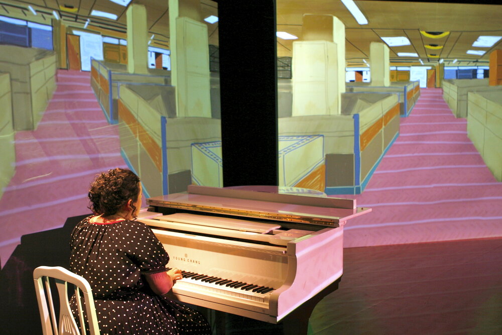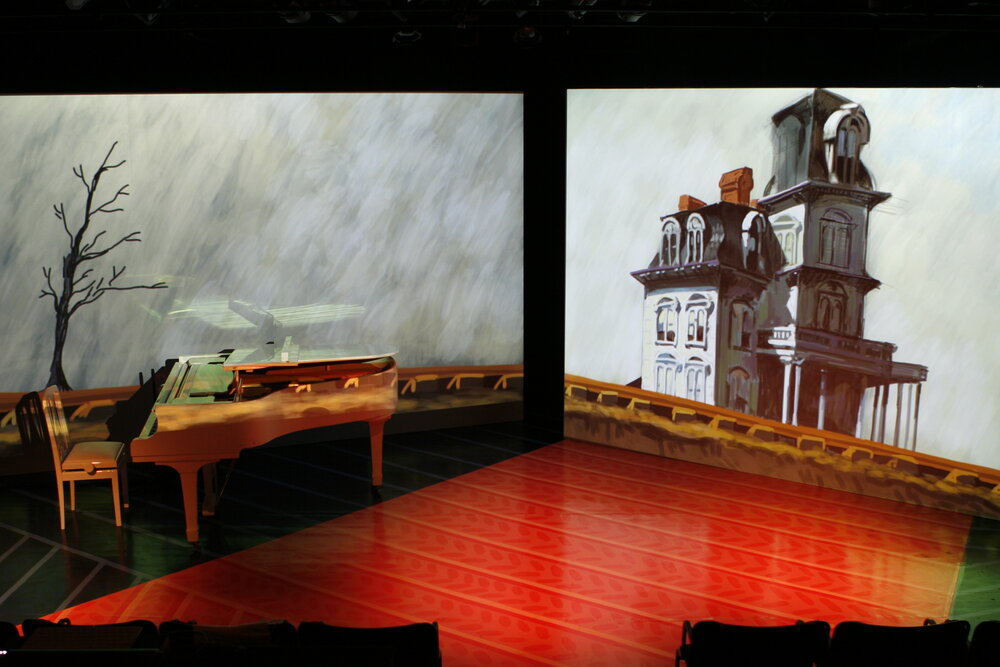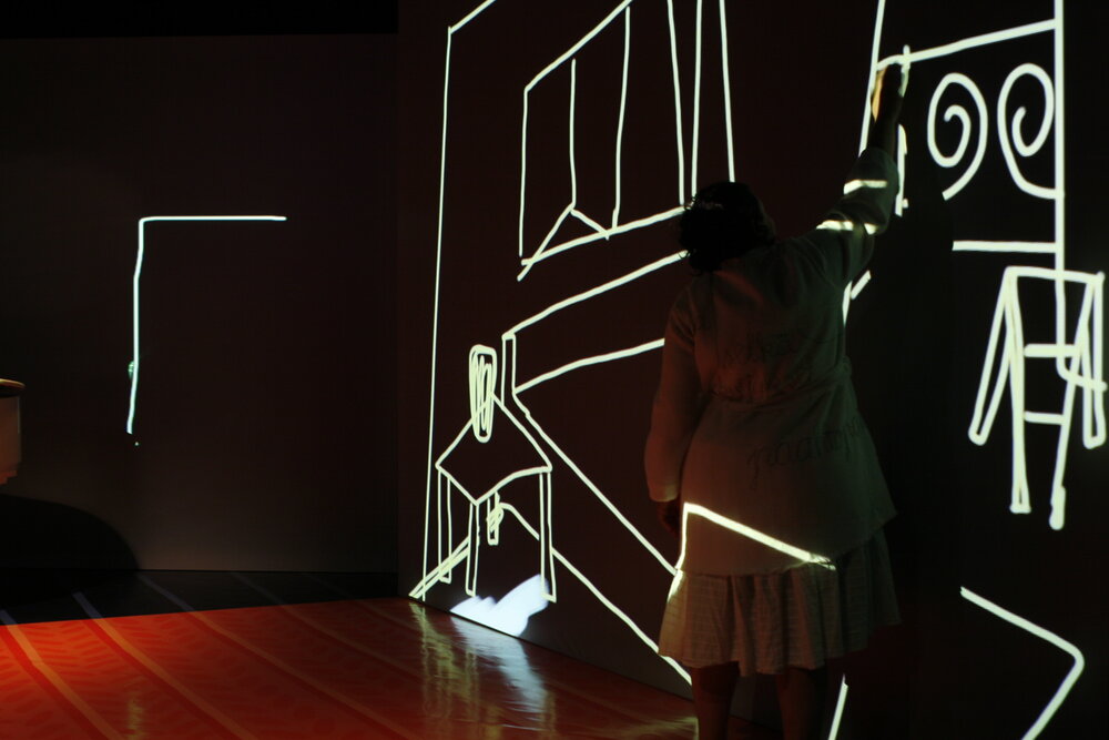I was responsible for set design and video projections. Many of the digital drawings were made live with an iPad in syncronization with the performer.