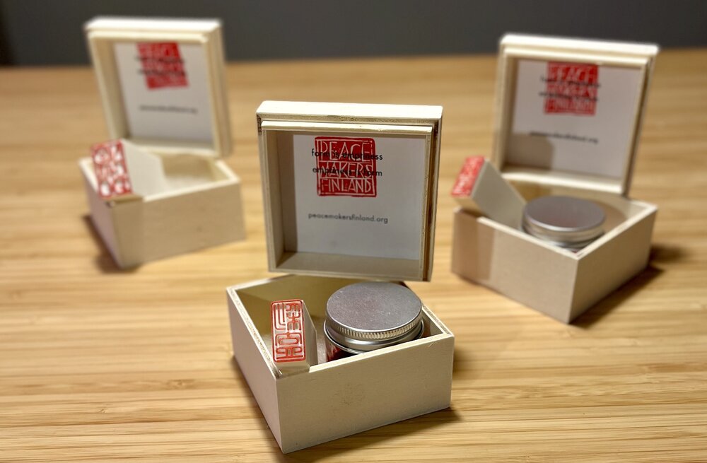 To support the work of the Engaged Buddhist community, Helsinki Zen – Peacemakers Finland (a local affiliate of Zen Peacemakers International), you may purchase 3D printed seal stamps, meditation cushions, and original artworks by Zen Peacemaker Sensei Mikko Ijäs. Shipping is included for artwork within the EU, and European bank transfers, Wise, and PayPal are accepted.