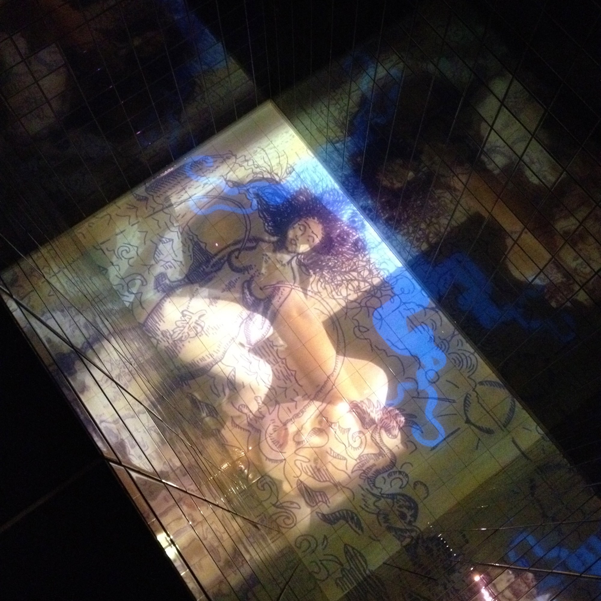 The installation was built as a seven room maze, which the spectator needed to walk through. Each of the rooms had a particular setting for the projections and music.